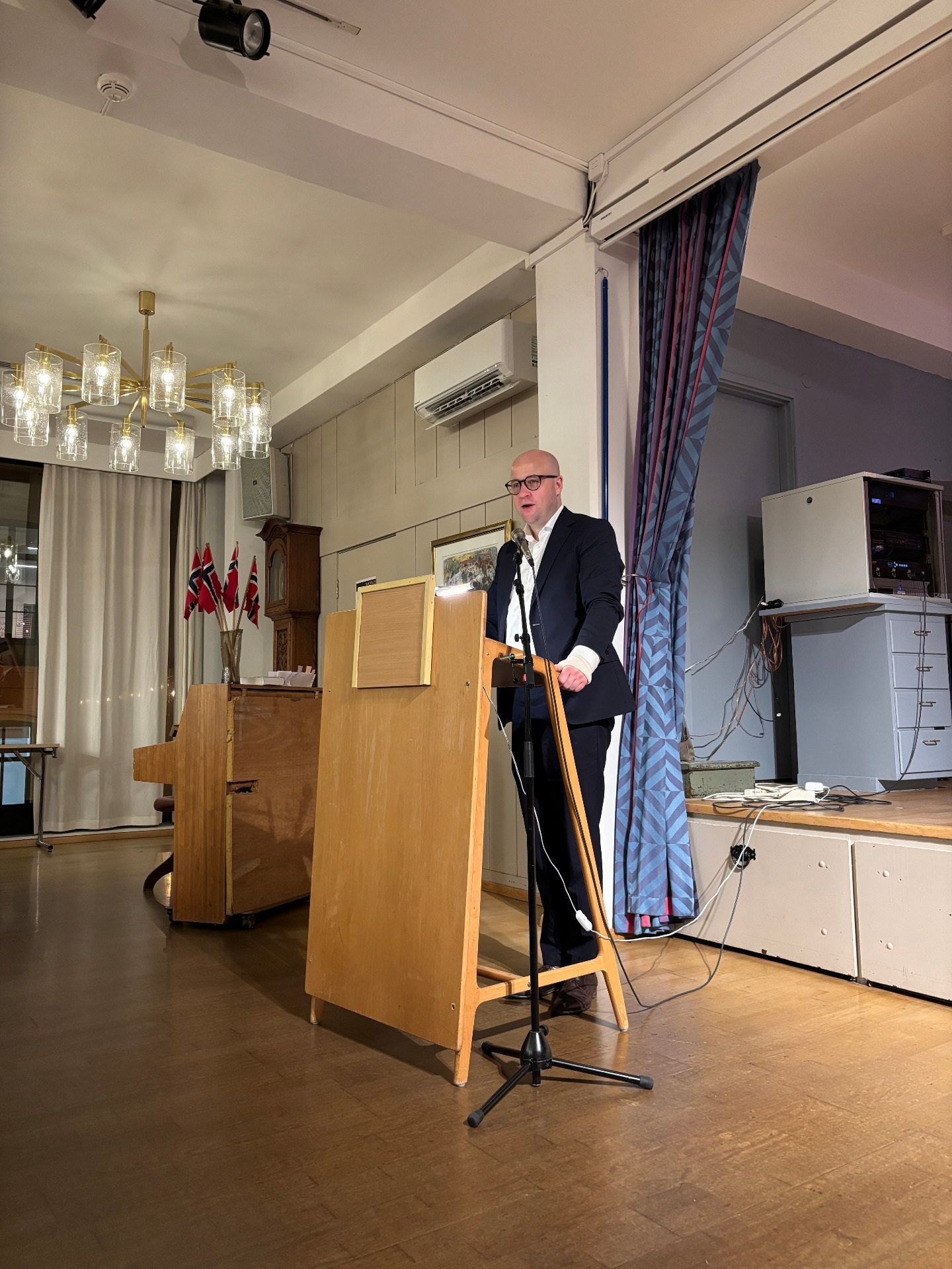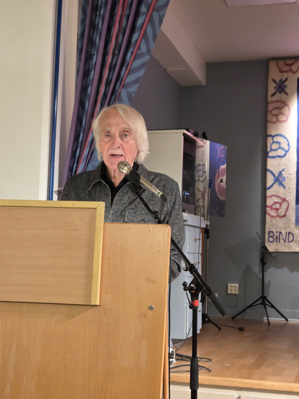 Det var ei klår og god framføring om korleis stoda er for nynorskstudentar på UiA. Ho kom med døme på at det å skrive eksamenoppgåver på nynorsk var vanskeleg, for leiinga såg ikkje verdien av ekstraarbeidet. Det fekk halde med bokmål og engelsk! Men mange av lærarane er positive, og det er bra. Ho fortalde vidare at i år er det eit lyspunkt med masterstipend for dei som leverer masteroppgåver på nynorsk. Mållaget i Kristiansand tok initiativet til dette hausten 2024.