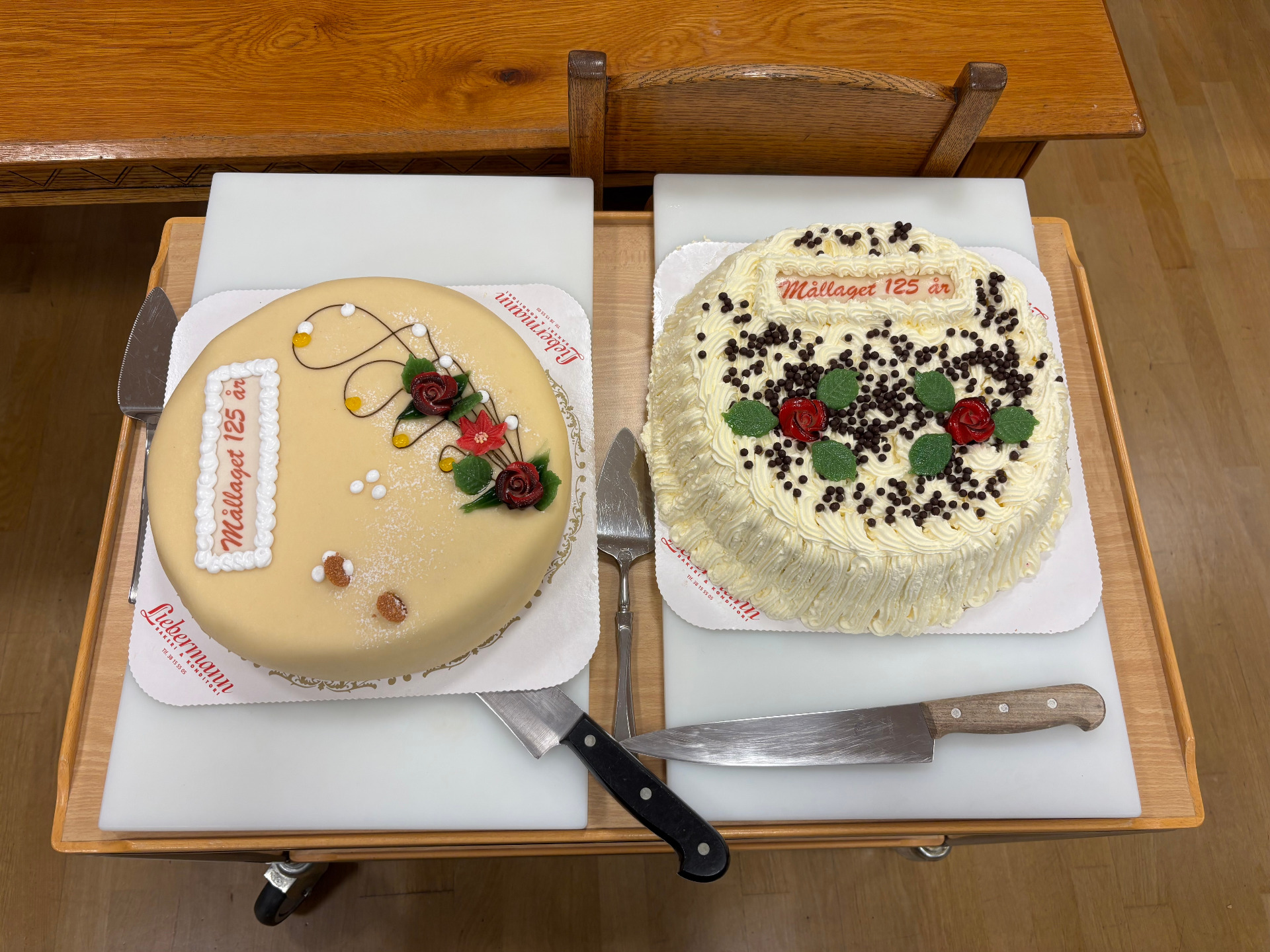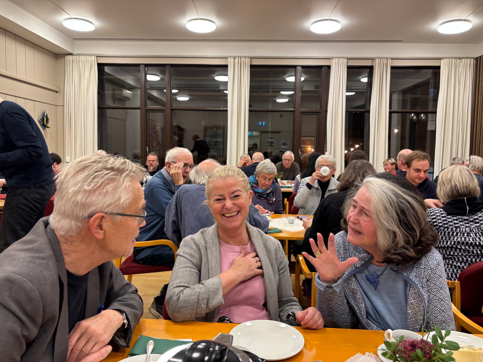 Kaffi og blautkake stod sist på programmet. Alle fekk sitjeplass, men meir dekketøy måtte hentast. Styret hadde rekna med 30-40 kanskje kom til å kome, men det var nok over 50. Svært gledeleg!